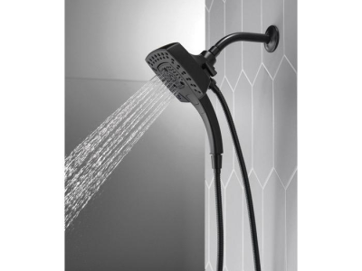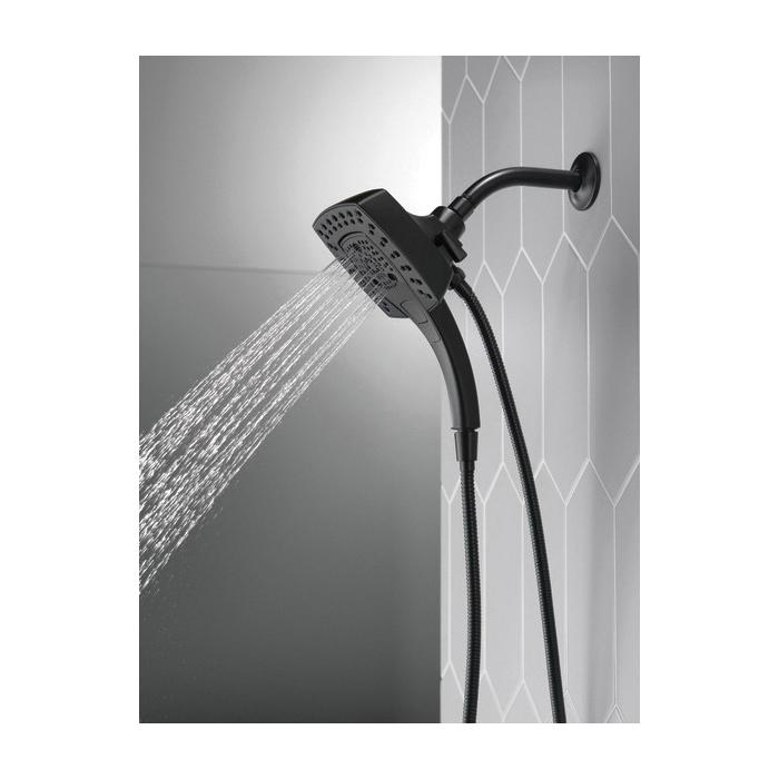 DELTA®, 58474-BL25, Shower Head and Hand Shower Combo, 2-in-1, In2ition® Collection, 2.5 gpm Flow Rate, 60 to 82 in Hose Length, H2Okinetic® PowerDrench®/Full Body/Massage/Shampoo Rinsing/Pause Spray, 80 psi Pressure, Metal Hose, Matte Black, 9-1/2 in L x 5-1/4 in W x 5-3/4 in H Dimensions, With Slide Bar: No, Import