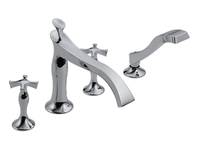 Brizo® Roman Tub Trim, Series: T67490, RSVP®, 18.5 gpm, 10 to 16 in Center Distance, Slip-On Spout, 9-3/4 in Spout Reach, 3-13/16 in Spout Height, 60 to 82 in Hose, 2 Handles, 4 Faucet Holes, Spray Pattern: Full Body, Function: Traditional, 1 Spray Functions, Hand Shower: Yes, 3 in Maximum Deck Thickness, Deck Mounting, Ceramic Disc, 9-3/4 in H, Brass, Polished Chrome, Domestic
