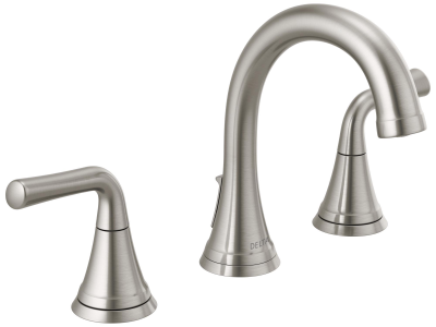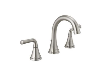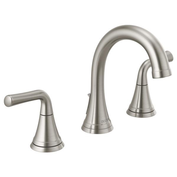 DELTA® Widespread Bathroom Faucet, Lead Free, Kayra™ Collection, 1.2 gpm at 60 psi Flow Rate, 6 to 16 in Center Distance, Rigid Spout, 5 in Spout Reach, 4-7/16 in Spout Height, Lever Handle, 2 Handles, Metal Push Pop-Up Drain, 3 Faucet Holes, 3/8 in Connection, Compression Connection, Spray Pattern: Laminar, 1 Spray Functions, 1-5/8 in Maximum Deck Thickness, Deck Mounting, Washerless Cartridge, 6-15/16 in H Dimensions, Brass, Stainless Steel, Import