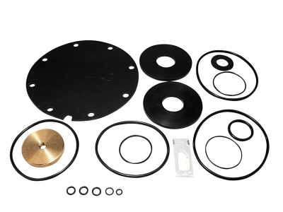 This total rubber parts kit is used for replacing or repairing the relief valve assembly on a 4 inch lead free reduced pressure zone assembly series 909 used to prevent the reverse flow of polluted water from entering into the potable water supply due to backsiphonage and or backpressure. This kit consists of a diaphragm, two molded disc assemblies, two seat O-rings, RV O-ring, two piston O-rings, RV stem O-ring, flow tube O-ring and cover O-ring.
