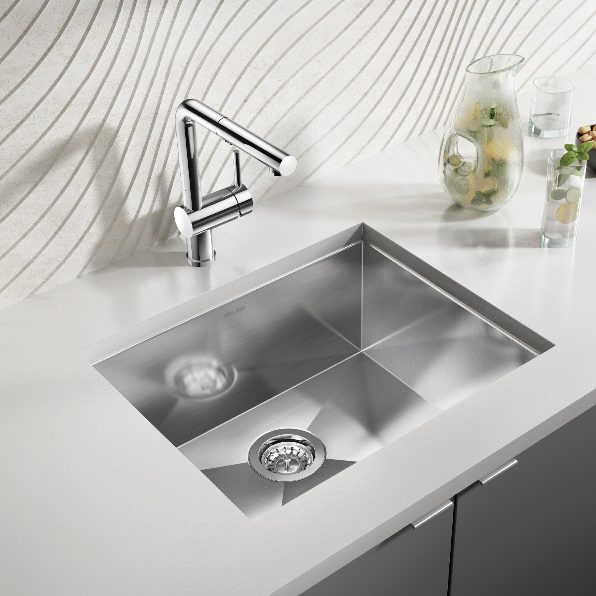Everyday convenience meets modern design. The QUATRUS R0 22" Undermount Stainless Steel Kitchen Sink is a must-have for anyone looking to maximize prep space; its compact size makes it ideal for smaller areas such as kitchen islands, bars or even butler pantries. German-engineered with corrosion-resistant stainless steel for long-lasting durability and zero radius corners for a modern look —the QUATRUS R0 22" sink makes kitchen life easy. Combine the QUATRUS R0 22" sink with a BLANCO faucet and accessories to create a BLANCO UNIT; a seamless, fully-integrated kitchen solution designed to transform kitchen chores into joyful experiences. Everything you need to drink, prep and clean, all in one place.