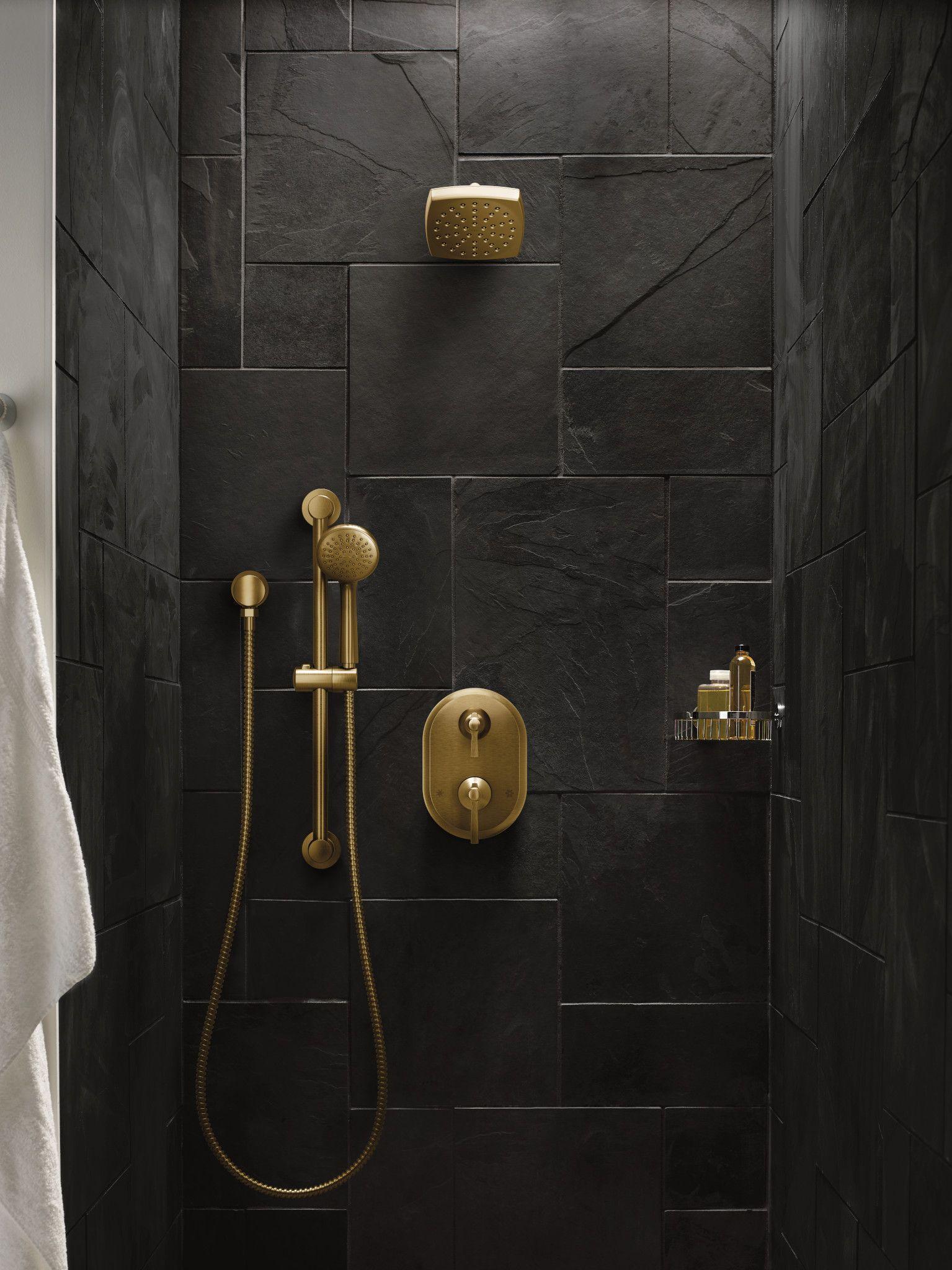 Moen® Handheld Shower, Eco-Performance, Series: 3887EP, 1-1/4 in Shower Head Dia, 2 gpm, Invigorating Spray, Metal Hose, Brushed Gold, With Slide Bar Yes/No: Yes, Domestic