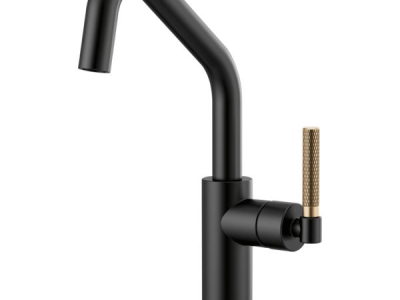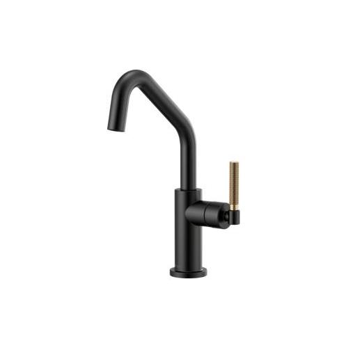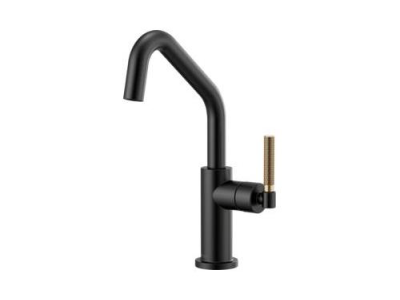 Brizo® Bar Faucet, Litze™, 1.8 gpm, Angled Spout, 6 in Spout Reach, 11-1/2 in Spout Height, Knurled Lever, 1 Handles, 1 Faucet Holes, 1-1/8 to 1-1/2 in Faucet Hole, 1/2-14, NPSM, 3 in Maximum Deck Thickness, Deck Mount, Ceramic Disc Valve/Cartridge, Solid Brass, Matte Black/luxe Gold, Import