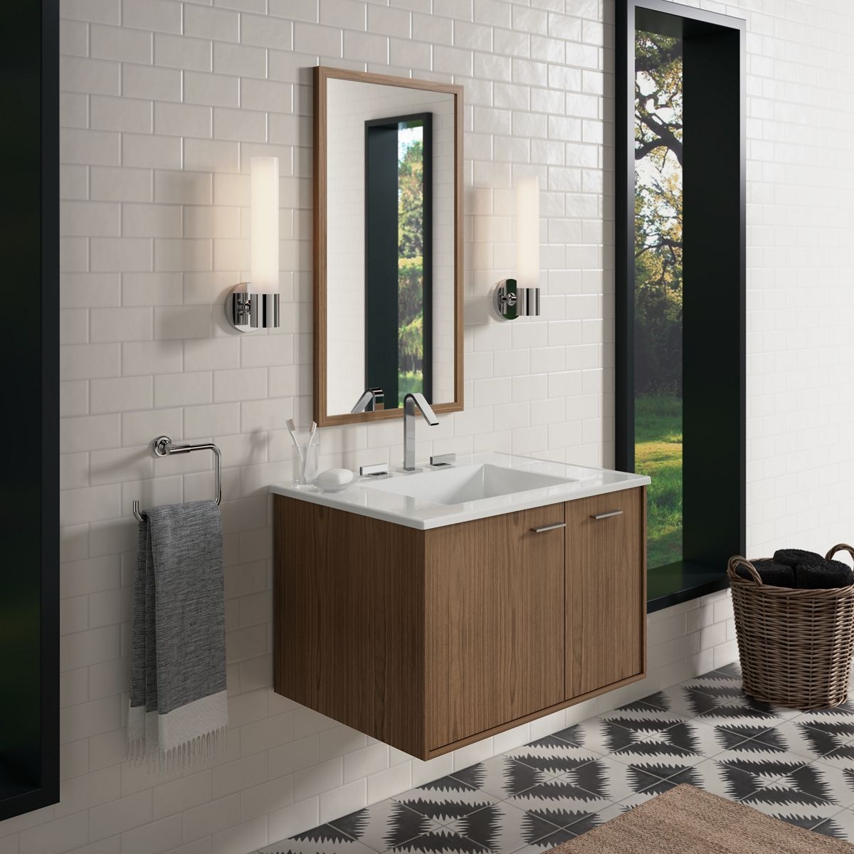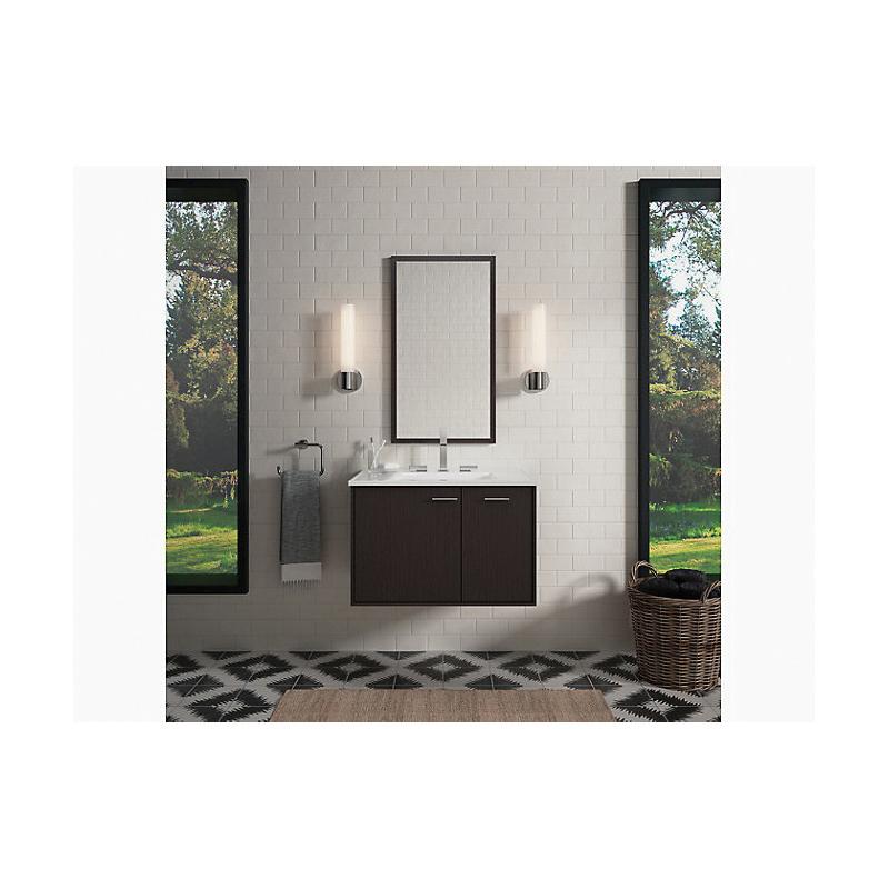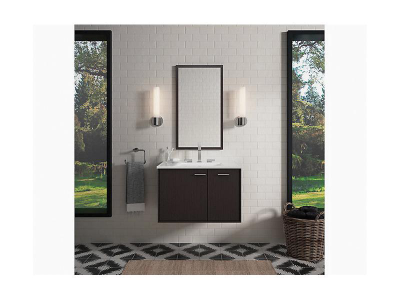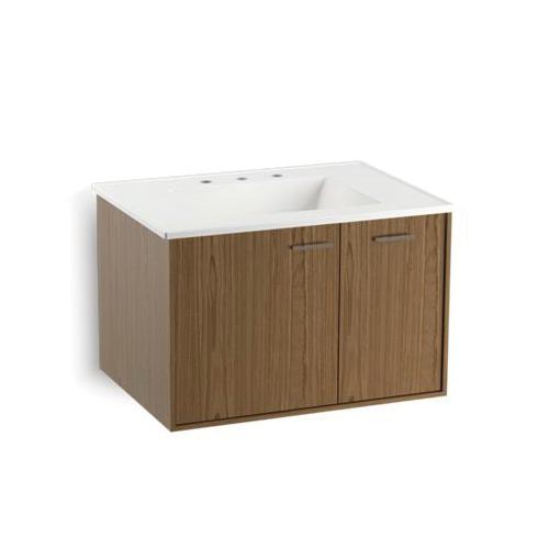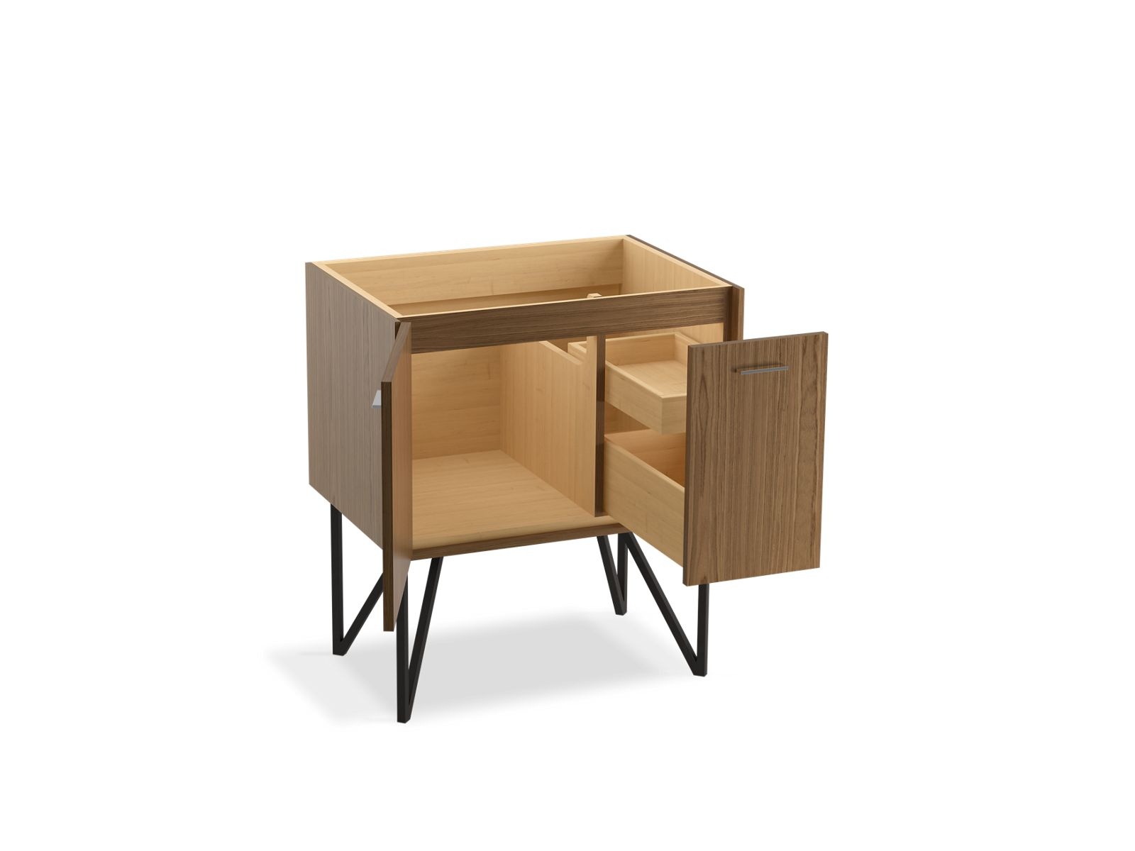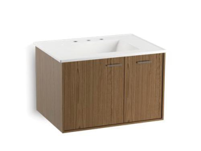 Breathtaking design meets unrivaled craftsmanship. No detail was overlooked in the meticulous crafting of this collection, from the premium hardwoods to the specially designed hardware and vanity tops, all available in an array of finishes to create your own look. This KOHLER® Jute bathroom vanity combines the warmth of wood with a sleek wall-hung installation for a fun play on mid-century modern design. Complete your 30" wall-mount single sink vanity cabinet with a coordinating top, hardware, and accessories from the collection.