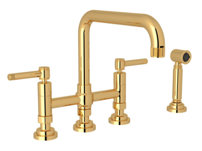 ROHL A3358ILWSIB-2 Campo Deck Mount U-Spout 3 Leg Bridge Faucet with Sidespray - Italian Brass