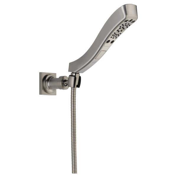 DELTA® Wall Mount Hand Shower, Tesla® Collection, 2-3/8 in Shower Head Diameter, 4 Shower Head Patterns, 2 gpm Flow Rate, 60 in Hose Length, Full Body/H2OKinetic®/Massage/Pause Spray, Slide Bar Holder, 80 psi Pressure, 1/2 in Connection, Metal Hose, Brass, Stainless Steel, 7-3/16 in D Dimensions, Import
