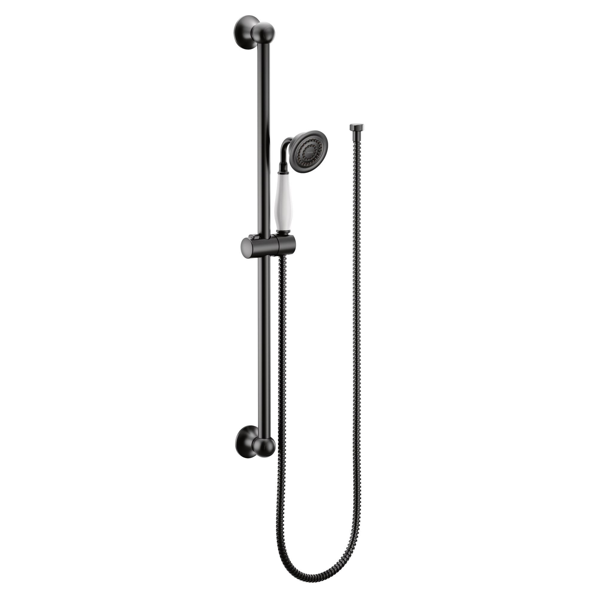 Moen® Hand Shower, Eco-Performance, Series: S12107EP, WEYMOUTH™ Collection, 3-3/8 in Shower Head Diameter, 1-Function Shower Head Patterns, 1.75 gpm Flow Rate, 69 in Hose Length, Full Spray, Matte Black, 8 in H Dimensions, With Slide Bar: Yes, Domestic