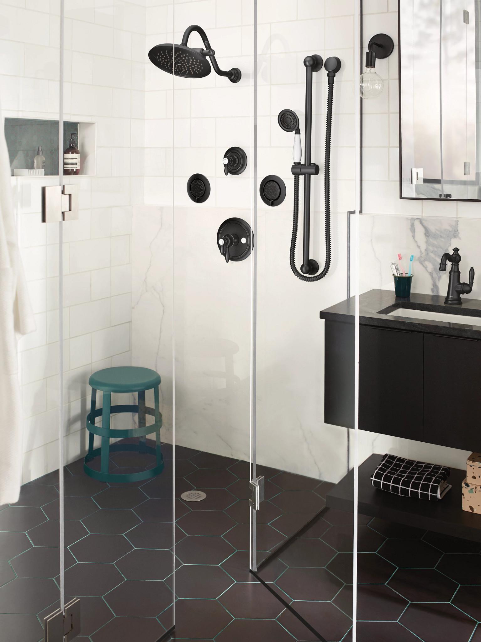 Weymouth's gracious Victorian details include porcelain inlays with antiqued decorative script and a refined shepherd's spout. Elegant, Traditional design details and distinctive finishing touches present a sense of uncommon luxury in the Weymouth collection. Distinctive accents include porcelain inlays that feature Euro-influenced decorative script and signature styling elements to make an extravagant statement in your Traditional bath. Coordinated lighting and accessories make an extravagant design statement.