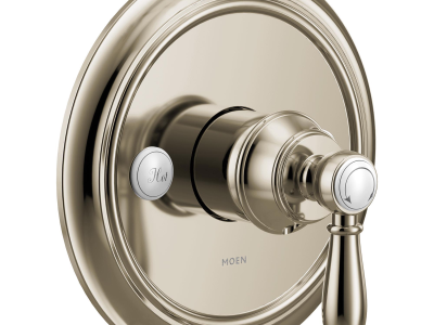 Moen® M-Pact™ M-Core™ Tub/Shower Valve Only Trim, 4-Port, Series: UTS33101 Series, Weymouth™ Collection, 1 Handle, Lever Handle, 7-1/4 in Dia Trim, 1213 Ceramic Disk Volume Control Cartridge, Wall Mounting, For Use With: U130/U140 Series Valves, Metal, Polished Nickel, Domestic, Residential