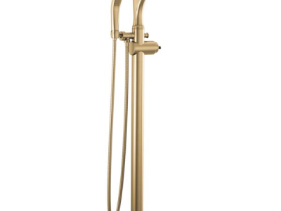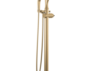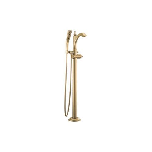 DELTA® Tub Filler Trim; Dorval™; Fixed Spout; 9 in Spout Reach; 40-1/2 in Spout Height; 60 to 80 in Hose; 1 Faucet Holes; Spray Pattern: H2Okinetic®/Massage/Pause; Hand Shower Yes/No: Yes; 10.63 in L x 9 in W x 43 in H; Solid Brass; Champagne Bronze; Domestic; Commercial/Residential