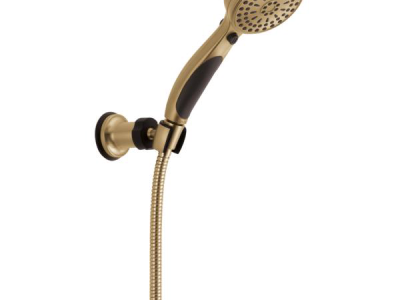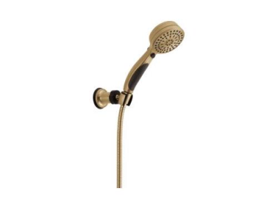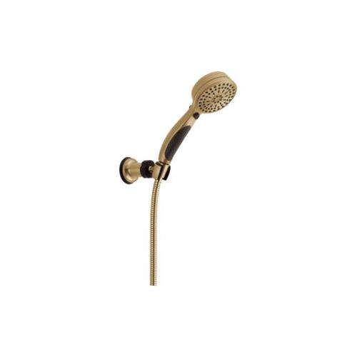 DELTA® Hand Shower, Adjustable Wall Mount, 3-5/8 in Shower Head Diameter, 2.5 gpm Flow Rate, 60 to 82 in Hose Length, Full Body/Fast Massage/Full Body with Massage/Shampoo Rinsing/Shampoo Rinsing with Massage/Drench/Drench Spray with Massage/Soft Full/Pause Spray, 80 psi Pressure, Metal Hose, Brilliance® Champagne Bronze, 10.19 in L x 3.56 in W x 8.13 in H Dimensions, With Slide Bar: No, Import