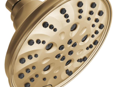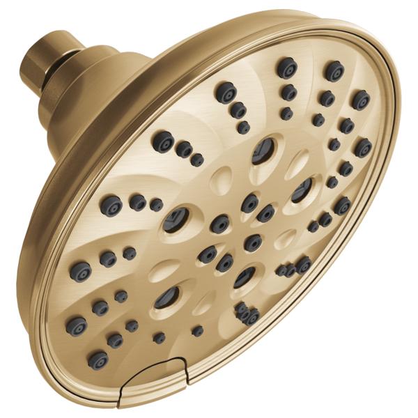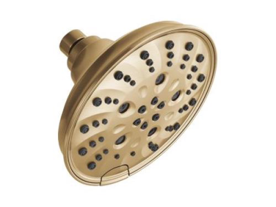 DELTA®, 52669-CZ-PR, Showerhead, 1.75 gpm Flow Rate, 1/2-14 NPT Connection, Square Shape, Spray Pattern: H2Okinetic® PowerDrench®, 80 psi Pressure, 4 x 6 in Head, 4 in Overall Length, 6 in Overall Width, 6 in Overall Height, Plastic, Lumicoat Champagne Bronze, Import