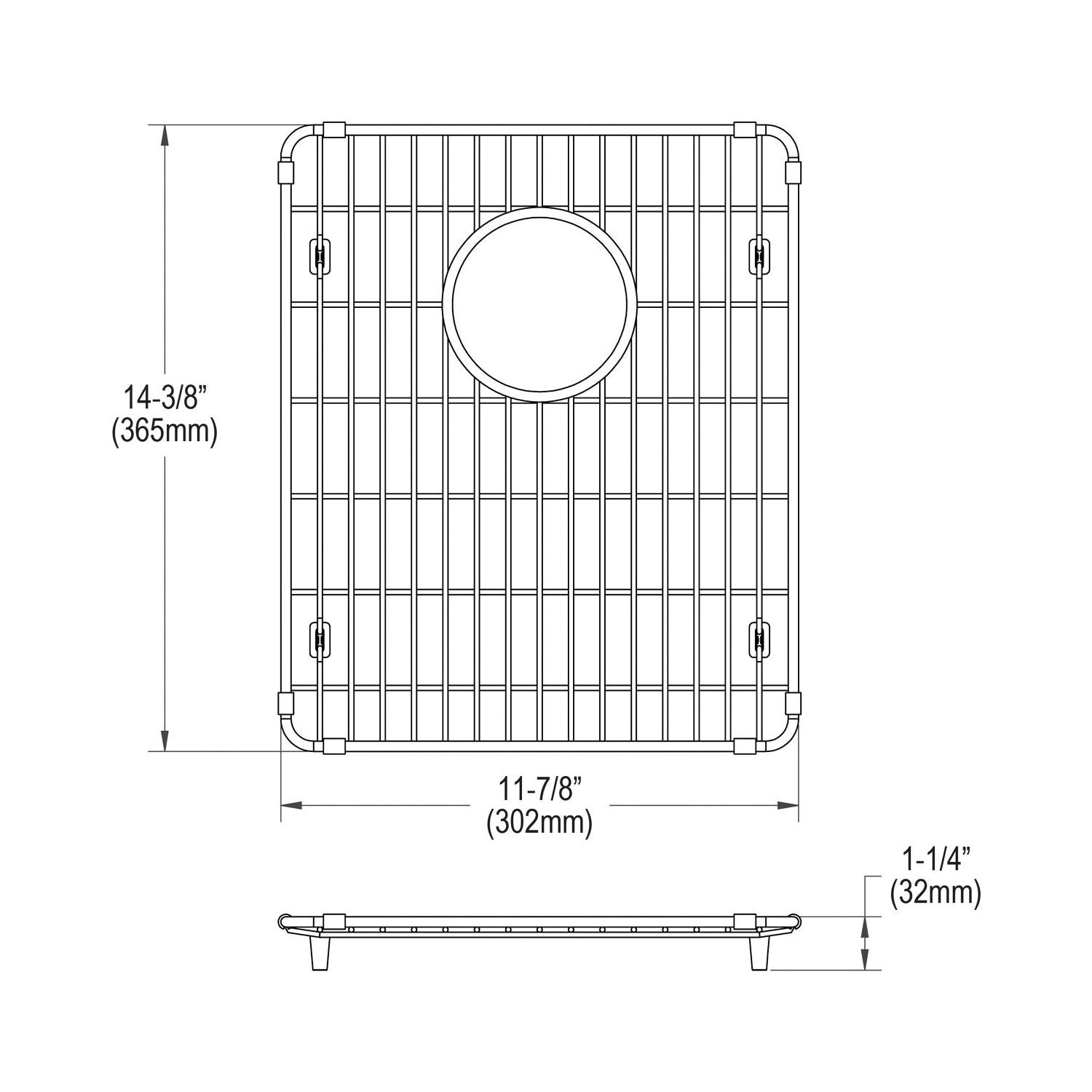 Elkay® Bottom Grid, Crosstown®, 11-7/8 in Length, 14-3/8 in Width, 1-1/4 in Height, Stainless Steel, Polished Stainless Steel, Import