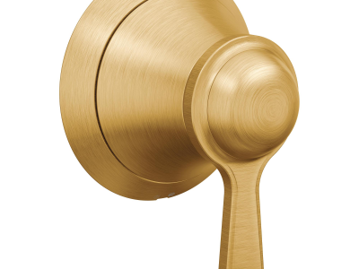 Moen® ExactTemp® Volume Control Valve Only Trim, Series: TS44402 Series, Colinet™ Collection, 1 Handle, Lever Handle, 4 in Dia Trim, 130157 Volume Ceramic Disc, 3/4 in IPS Valve Inlet Connection, 1 Spray Function, Wall Mounting, For Use With: S3600 3/4 in IPS Volume Control Valve, Metal, LifeShine® Brushed Gold, Domestic, Residential