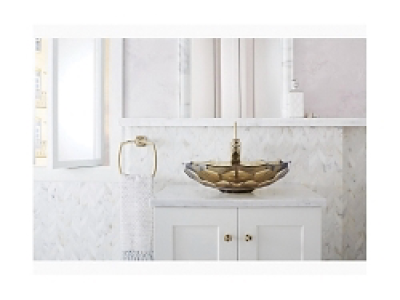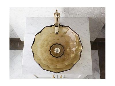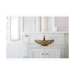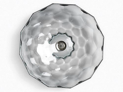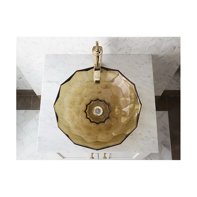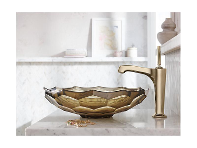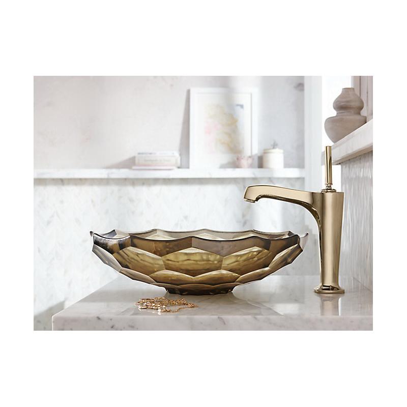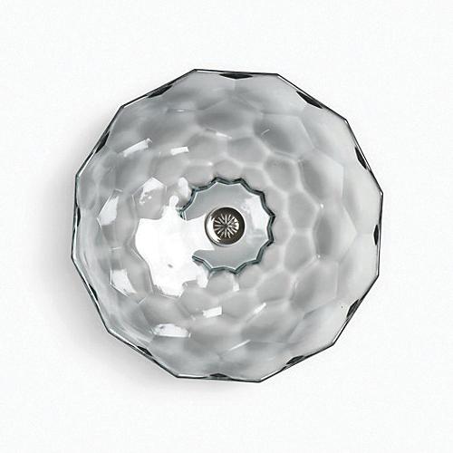 The KOHLER® Briolette glass sink displays a uniquely faceted shape inspired by the precisely cut surfaces of precious stone. Gently curved walls highlight the natural textural qualities of glass and create a striking reflective effect. This round vessel bathroom sink sits on top of the counter as a brilliant addition to your bath or powder room.