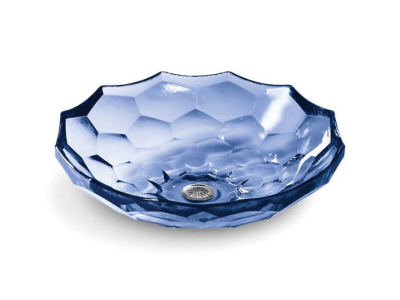 Kohler® Vessel Bathroom Sink, Faceted, Briolette™, Round, 16-7/16 in Dia x 4 in D Bowl, 1 Basin, 17-1/2 in W x 4-3/4 in H, Above-Counter Mount, Glass, Translucent Sapphire, ADA Compliance (Yes/No): Yes