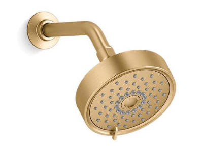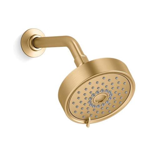 Kohler® Showerhead, Multi-Function, Series: 22170-G, Purist® Collection, 1.75 gpm Maximum, 1/2-14 Connection, Round Shape, 3 Sprays, Spray Pattern: Multi-Stream, Wall Mounting, 5-1/2 in Dia Head, 4-5/16 in Overall Width, Plastic, Vibrant® Brushed Moderne Brass