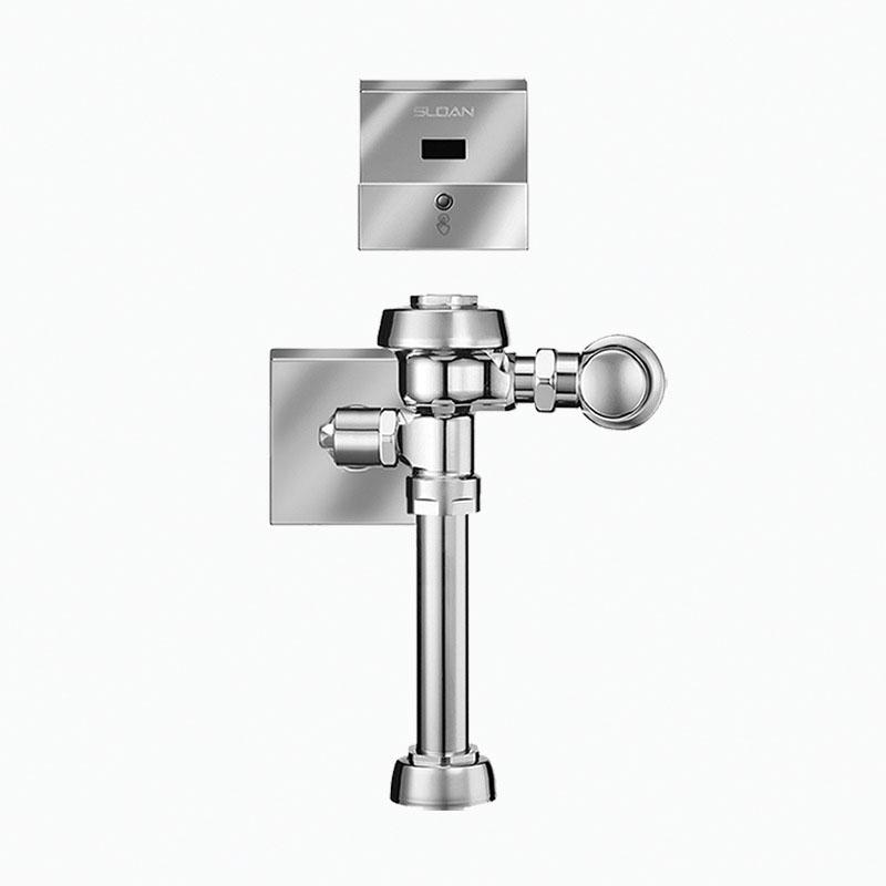 Exposed, Sensor Activated Sloan® Model Water Closet Flushometer, for floor mounted or wall hung top spud bowls.