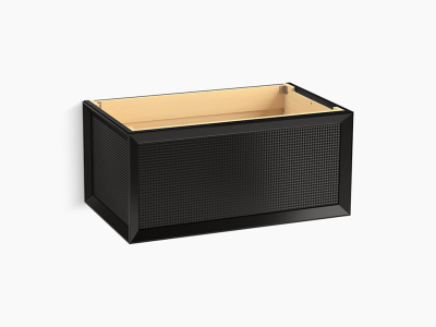 A stylishly elegant ensemble with playful detailing, Enivo promises to be the star of your bathroom. Textured drawers and panels juxtapose against glossy molding in the chest-like cabinet base, while ribbed baton-style hardware adds rounded visual interest and bright pops of contrasting metal. No matter your decor, this modern wall-hung vanity comes dressed to impress, a sophisticated canvas for housing accessories and accentuating your personal style-particularly when paired with coordinating quartz tops, KOHLER sinks, and legs (sold separately).