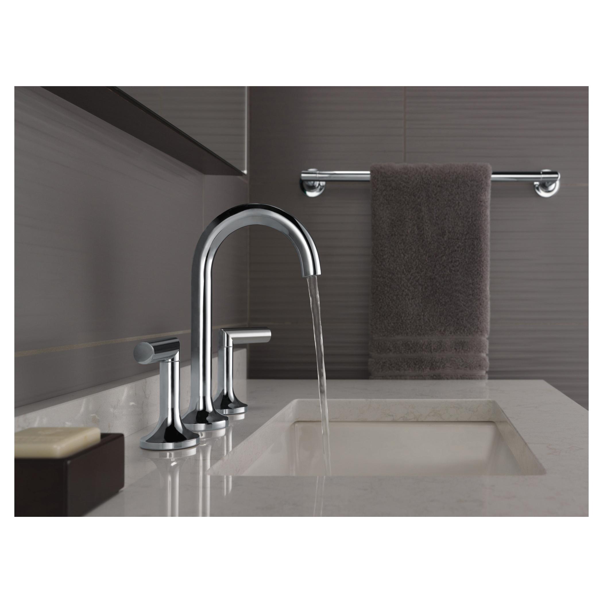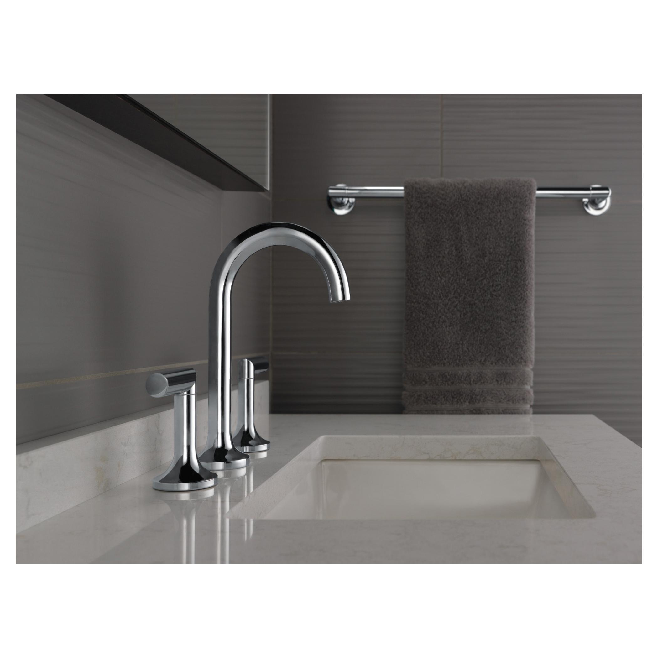 Brizo® Widespread Lavatory Faucet, Odin® Collection, 1.5 gpm Flow Rate, 6 to 16 in Center Distance, Fixed Spout, 4-13/16 in Spout Reach, 6-3/16 in Spout Height, 2 Handles, 3 Faucet Holes, 1/2-14 Connection, NPSM Connection, Spray Pattern: Laminar Flow Aerator, 3 in Maximum Deck Thickness, Deck Mounting, Ceramic Disc Cartridge, 9-1/16 in H Dimensions, Brass, Polished Chrome, Import