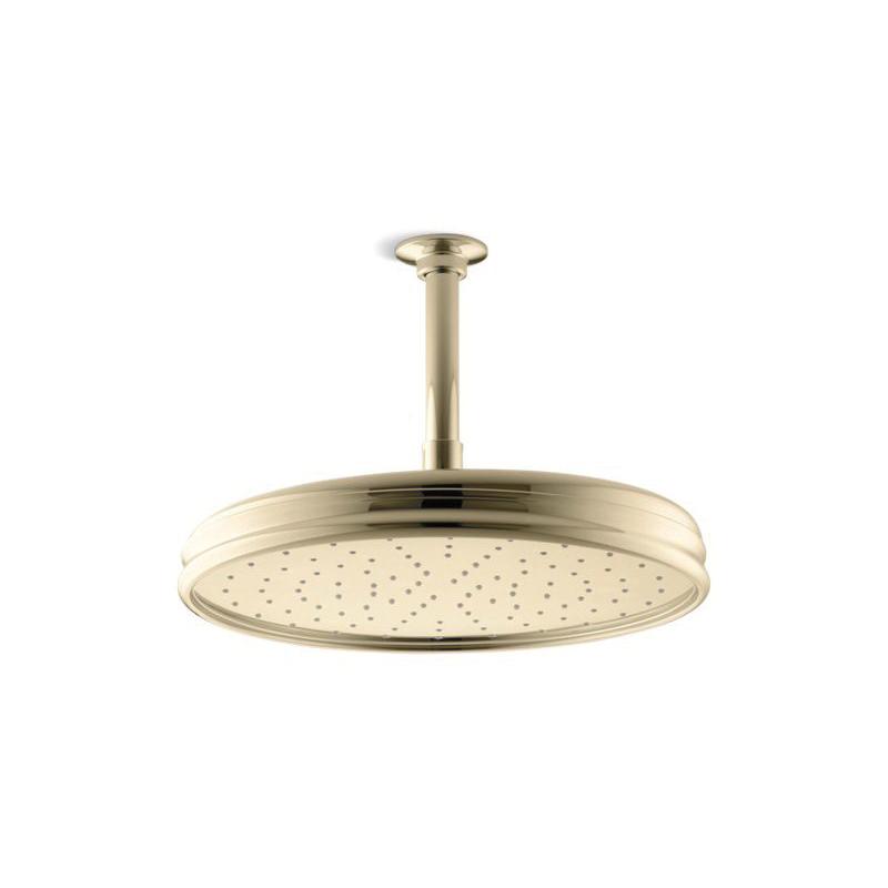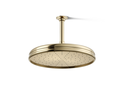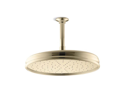 Kohler® Raincan Shower Head, Traditional, 2.5 gpm, 1/2 in, Round, Number of Sprays: 1, Ceiling Mount, 12-7/16 in Dia x 3-3/4 in H Head, Brass, Vibrant® French Gold