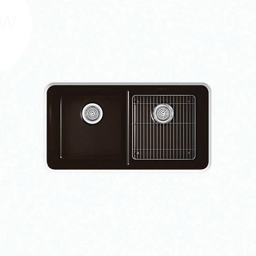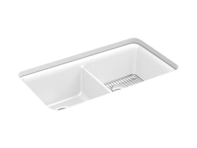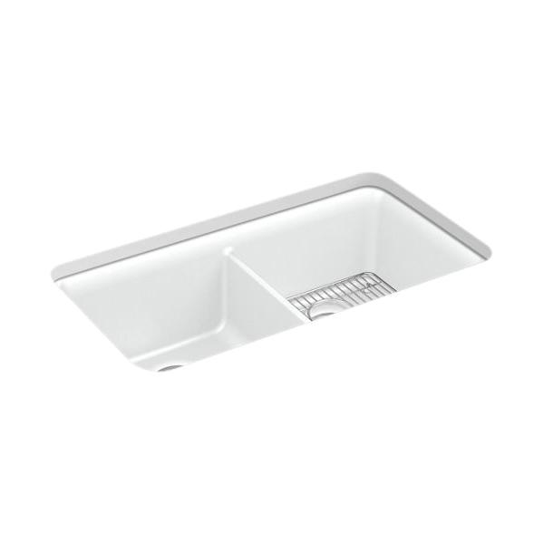 Kohler®, 8199-CM6, Kitchen Sink, Cairn® Collection, Rectangular Shape, 14-7/8 in Left, 14-7/8 in Right Bowl Length, 15-3/16 in Left, 15-3/16 in Right Bowl Width, 9-1/2 in Left, 9-1/2 in Right Bowl Depth, 3-7/8 in Drain Opening, 2 Bowls, 33-1/2 in L x 18-5/16 in W x 10-1/8 in H Overall, Undermount Mounting, Neoroc® Composite, Matte White