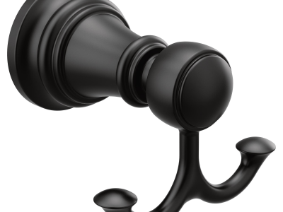 Moen® Robe Hook, Weymouth™ Collection, 2 Hooks, 3-1/4 in Overall Width, 3.1 in Overall Depth, 2.76 in Overall Height, Wall Mounting, Zinc, Matte Black, Import