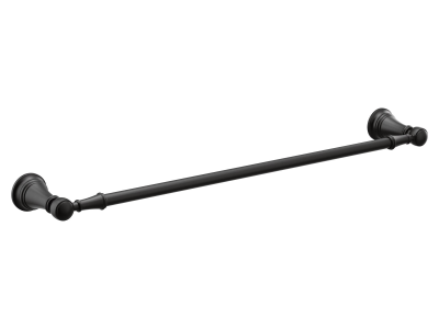 Moen® Towel Bar, Weymouth™ Collection, 24 in Bar Length, 25.99 in Overall Length, 2.92 in Overall Depth, 2.11 in Overall Height, 2.11 in Base, Zinc/Brass, Matte Black, Import
