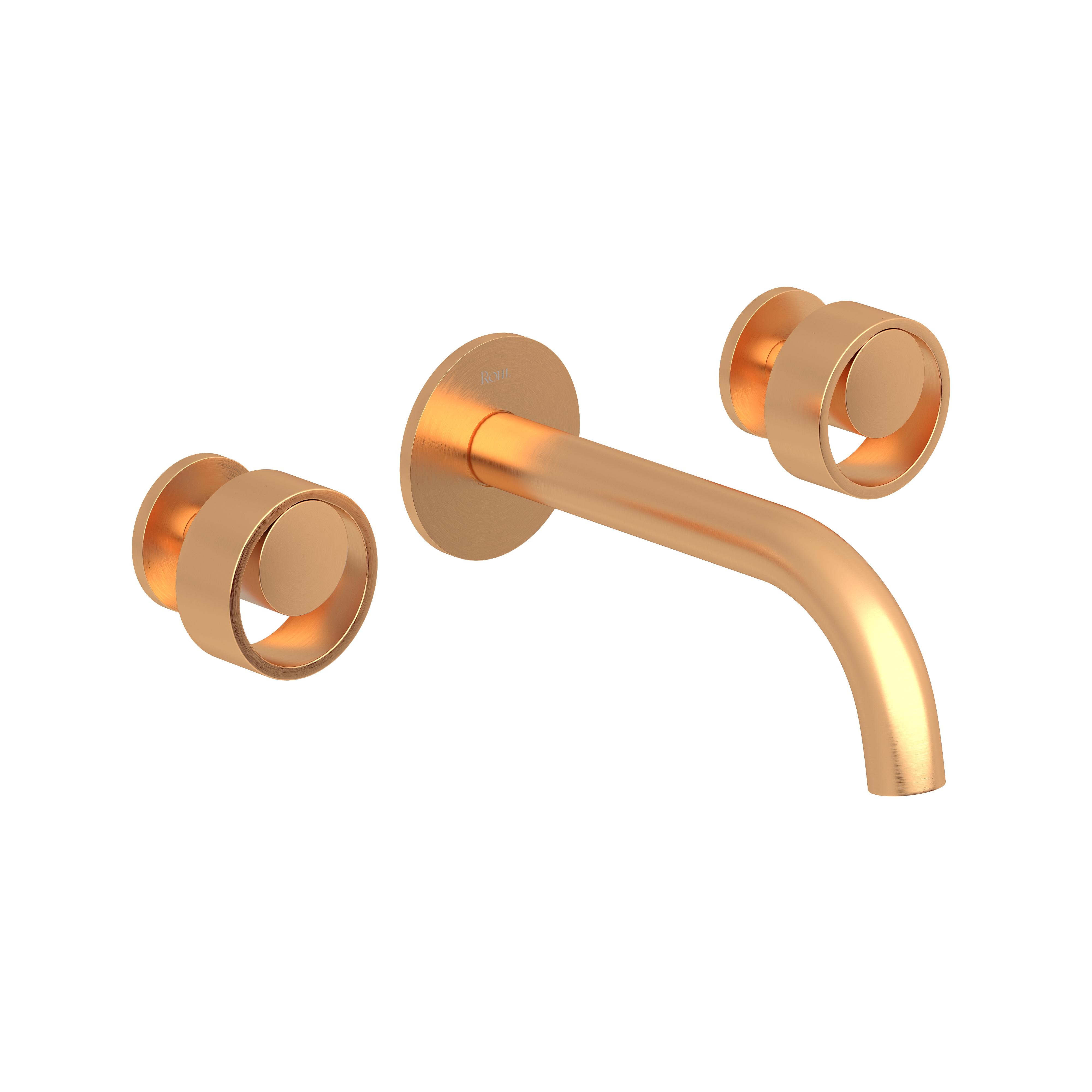 Rohl®, EC08W3IWSG, Bathroom Faucet, Transitional, Eclissi Collection, 1.2 gpm Flow Rate, Circular Handle, 3 Faucet Holes, Function: Traditional, Wall Mounting, Ceramic Disc Cartridge, Satin Gold
