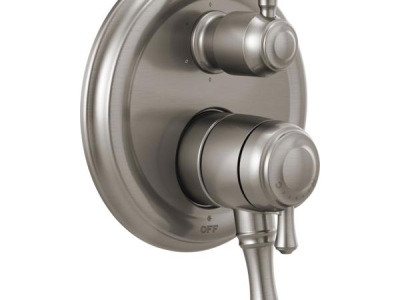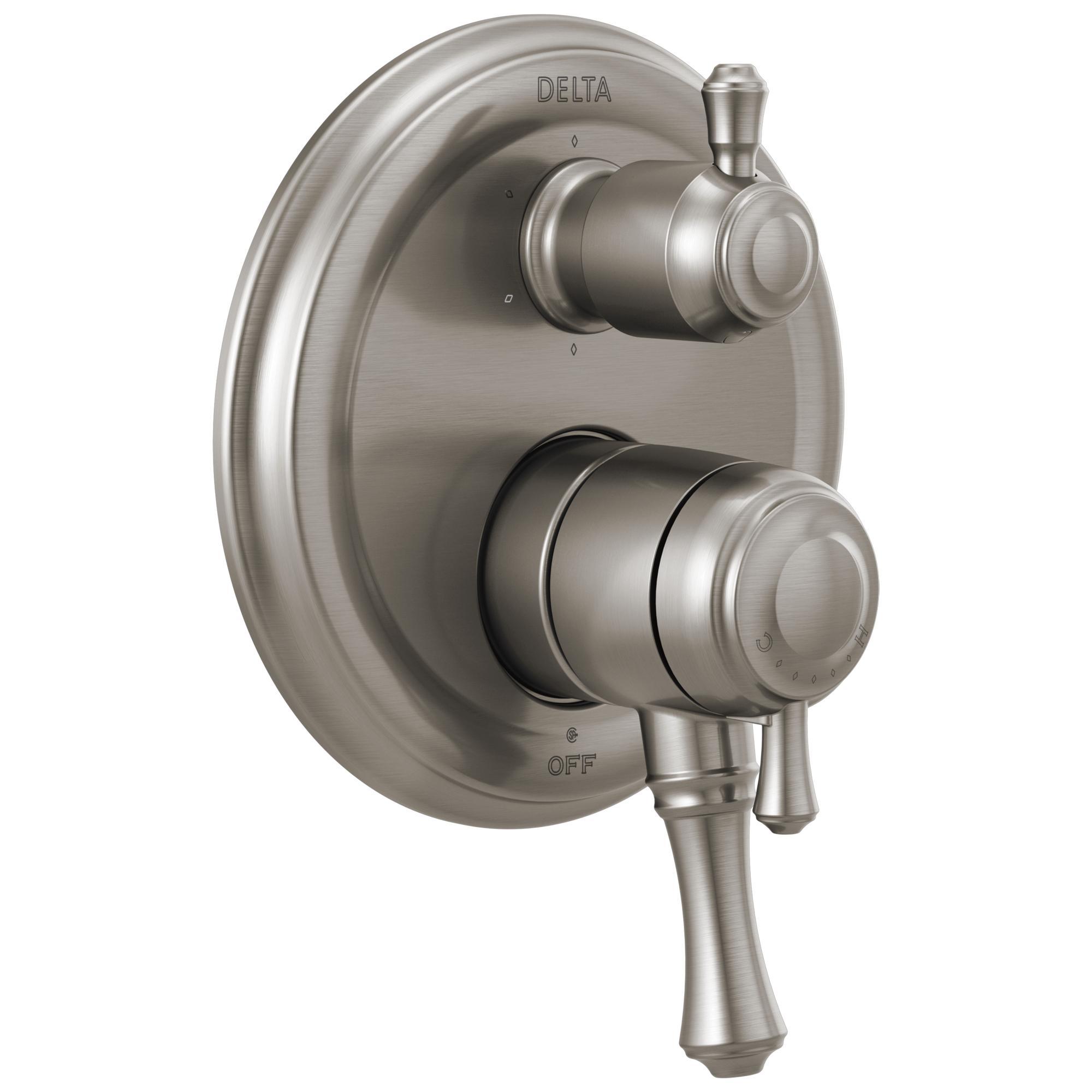 DELTA® Valve Trim, 6-Setting Traditional, Series: Monitor® 17, Cassidy™ Collection, Integrated Diverter Spout, Lever Handle, 7 in Dia Trim, 1222 Pressure Balanced, For Use With: MultiChoice® R22000 Series Universal Rough-In Valve Body, Metal, Stainless Steel