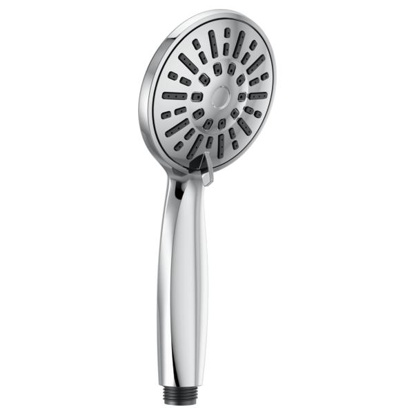 DELTA® Hand Shower, 3-7/8 in Shower Head Diameter, 1.75 gpm Flow Rate, Full Body/Full Body with Massage/Massage/Pause Spray, 80 psi Pressure, Polished Chrome, 2 in L x 3.88 in W x 8.75 in H Dimensions, With Slide Bar: No, Import