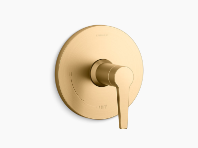 Pitch(TM) showering components feature a sleek, simple design that pairs beautifully with the full range of KOHLER(R) contemporary faucet collections. Complete this shower trim with a showerhead and a Rite-Temp(R) pressure-balancing valve, which maintains your desired water temperature during pressure fluctuations.