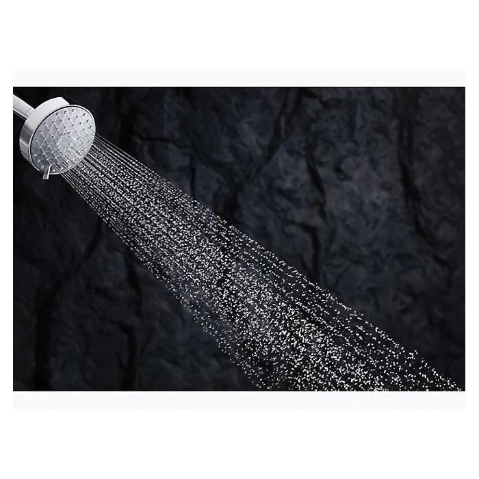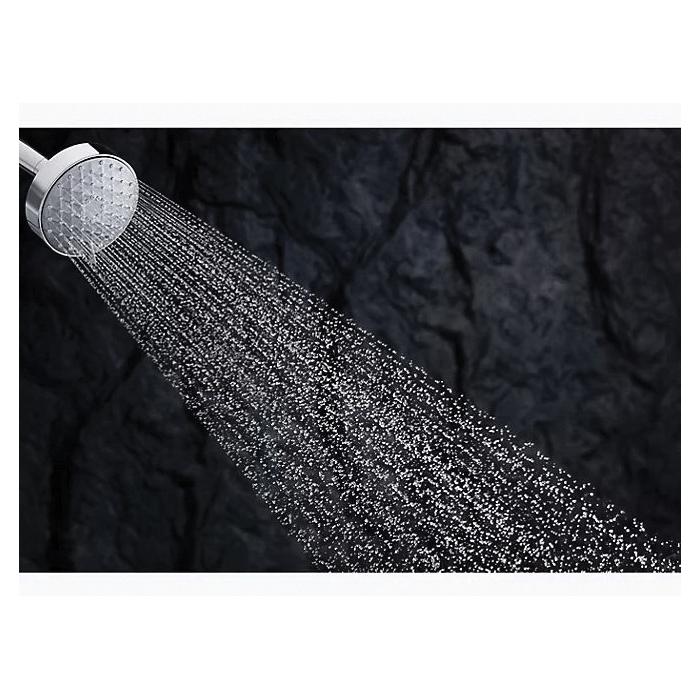 The Awaken® Handshower brings Kohler® quality, design and performance to your bath. Advanced spray performance delivers four-distinct sprays - wide coverage, intense drenching, targeted or water saving with a smooth rotation of a thumb tab. Ergonomic design makes for superior comfort and ease of use, with ideal balance and weight in the hand. The artfully sculpted sprayface reveals simple, architectural forms that complement contemporary and minimalist baths.