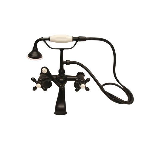 Barclay Tub Filler, Claw Foot Contemporary/Modern, 3.7 gpm Flow Rate, Elephant Spout, 5-3/4 in Spout Reach, Cross Handle, 3 Handles, 2 Faucet Holes, Hand Shower: Yes, 1/4 Turn Ceramic Disc Cartridge Valve/Cartridge, 9 in W x 11 in H Dimensions, Brass, Matte Black, Import