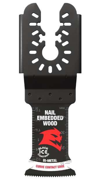 Diablo's universal fit bi-metal oscillating blades feature application specific designs that deliver maximum durability and longer life in nail embedded wood. These high performance blades feature an ultra hardened cutting edge to deliver up to 5X longer life than standard blades. Curve contact edge creates a pilot for precise, clean plunge cuts with less vibration. Black I.C.E. (Industrial Cooling Element) keeps the teeth cool and build up free for fast, clean cuts. The blade's universal fit, adapter free design easily attaches most tools, with the exception of Starlock tools.