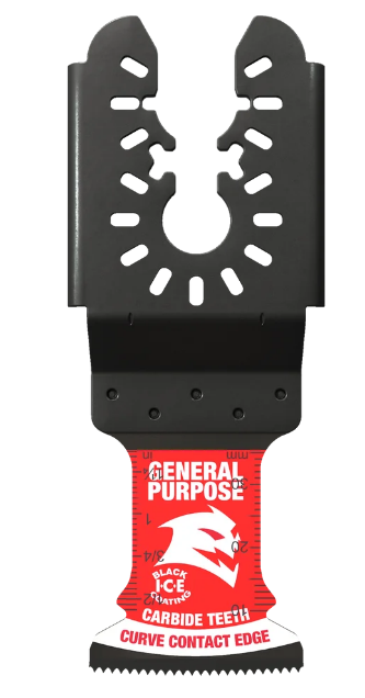 Diablo's universal fit carbide oscillating blades feature application specific designs that deliver extreme durability and superior cutting life in general purpose cuts: nail embedded wood, clean wood, metal and plastics. High performance carbide teeth deliver an unmatched up to 50X longer cutting life versus standard bi-metal blades. Curve contact edge creates a pilot for precise, clean plunge cuts with less vibration. An optimized blade design and Black I.C.E. (Industrial Cooling Element) keeps the teeth cool and build up free for fast, clean cuts. The blade's universal fit, adapter free design easily attaches to most tools, with the exception of Starlock tools.