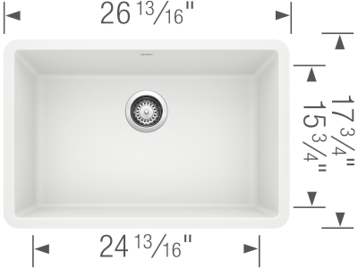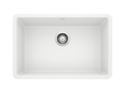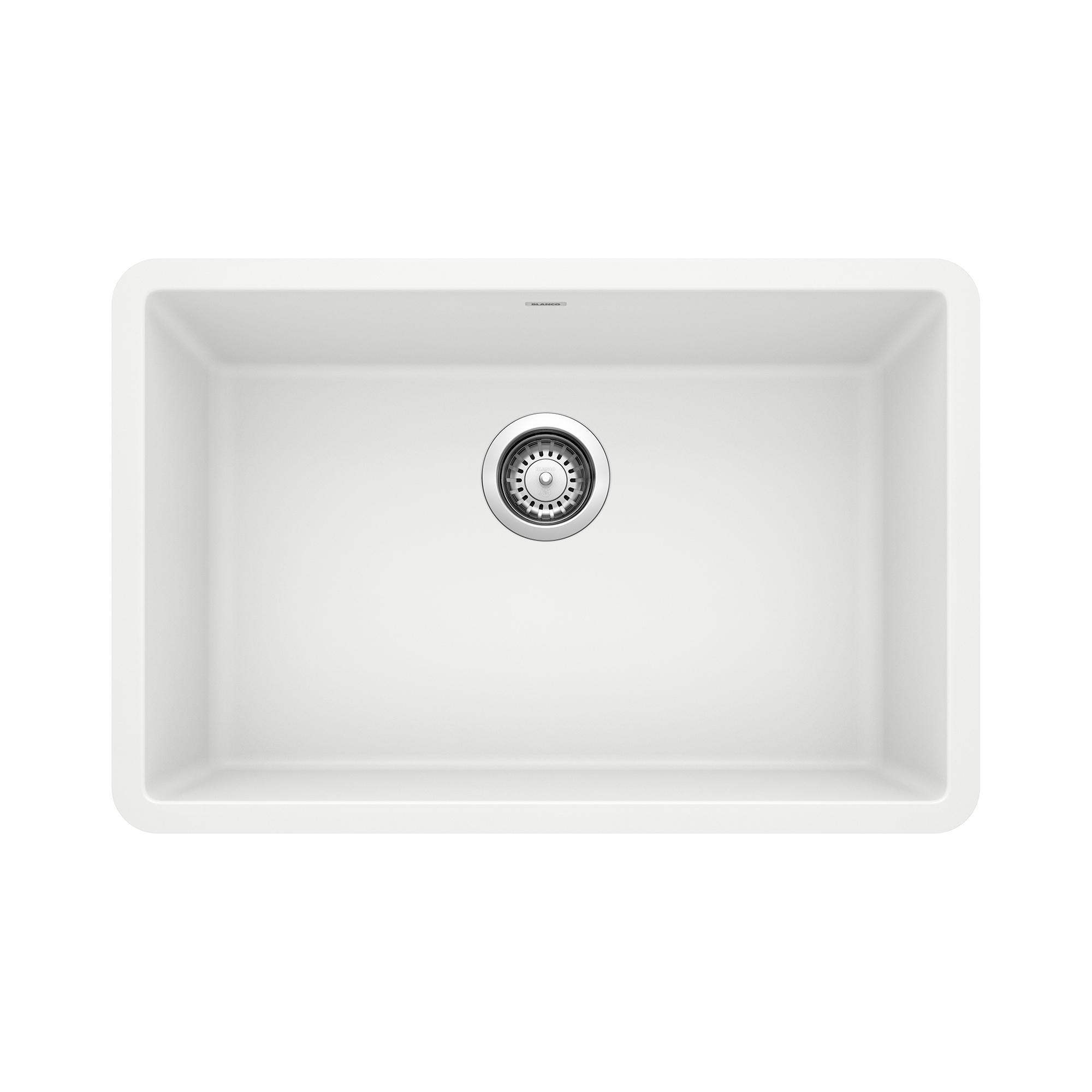Blanco, 522429, Composite Sink, PRECIS™ SILGRANIT® Collection, Rectangle Shape, 24-13/16 in Bowl Length, 15-3/4 in Bowl Width, 8-5/8 in Bowl Depth, 3-1/2 in Drain Opening, 1 Bowls, 26-13/16 in L x 17-3/4 in W Overall, Undermount Mounting, Granite, White