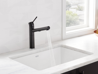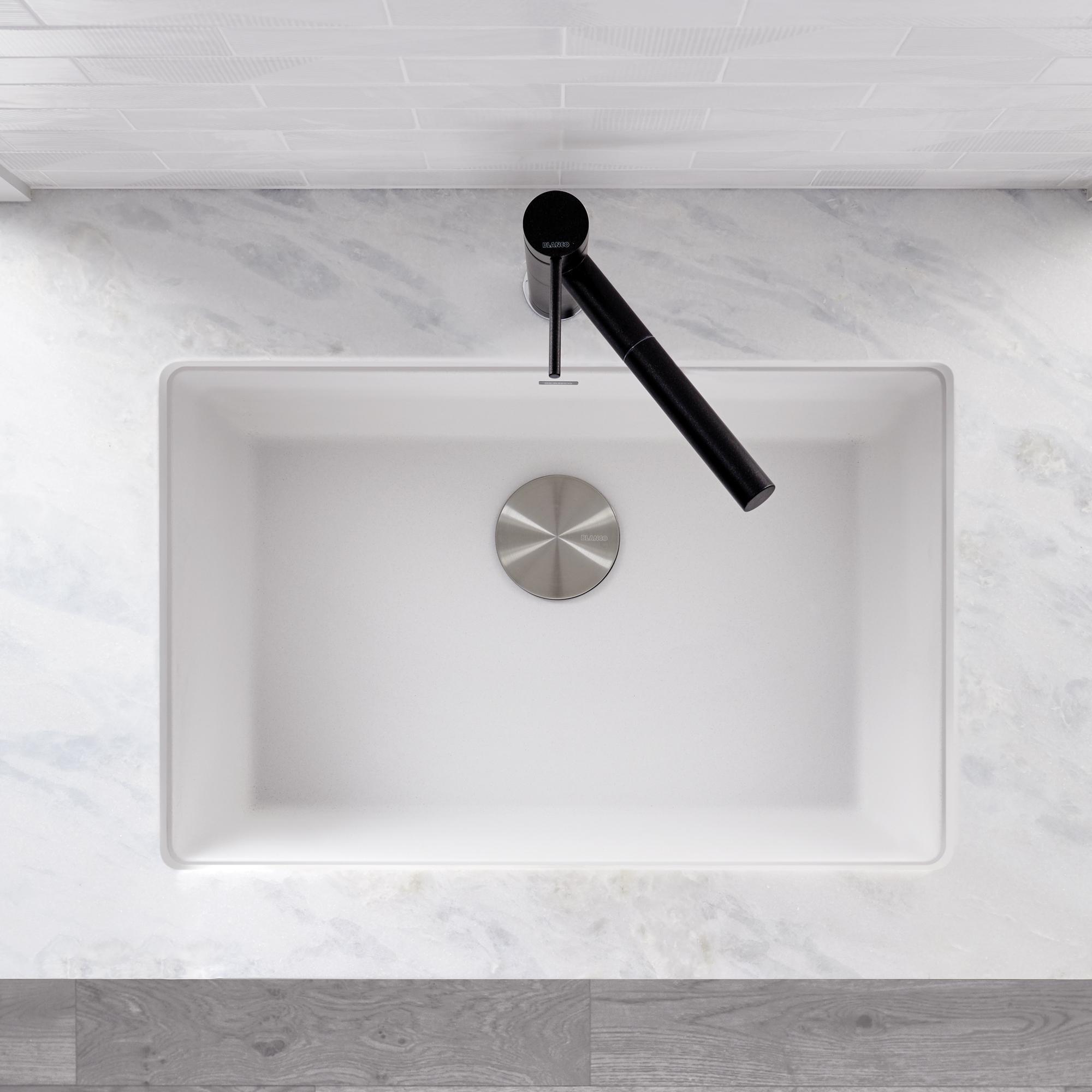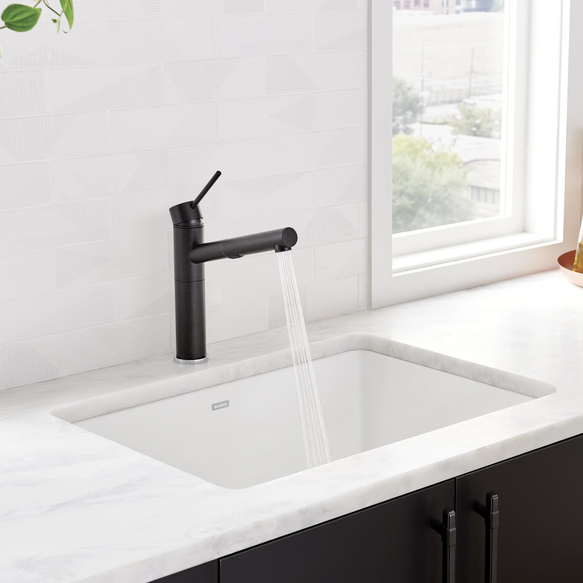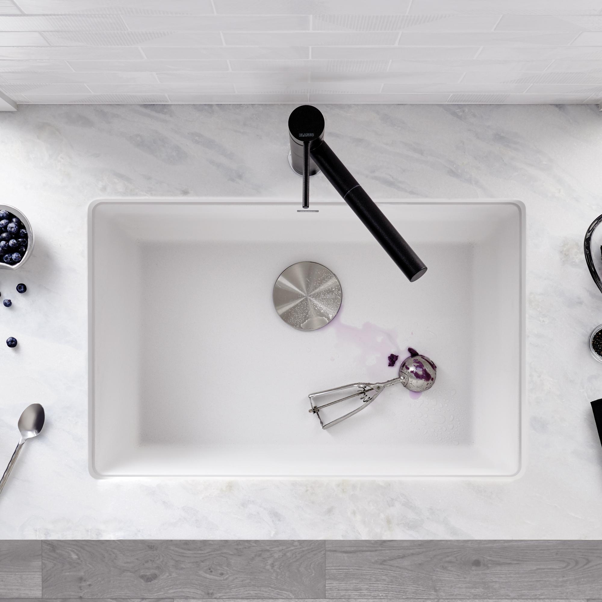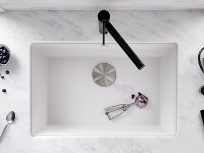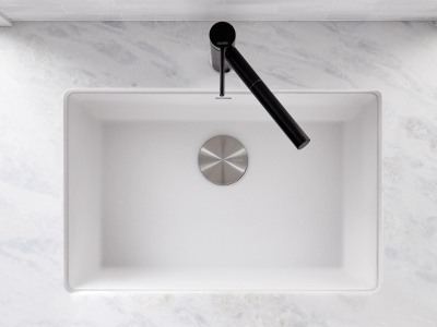 The PRECIS 27” SINGLE BOWL UNDERMOUNT KITCHEN SINK offers clean lines and a simple but spacious single bowl design. Made of SILGRANIT®, PRECIS kitchen sinks are engineered to withstand heavy cookware and hot bakeware. Silgranit sinks are not only strong but also beautiful, available in a range of nature-inspired colors that effortlessly complement the latest kitchen trends. Combine the PRECIS sink with a BLANCO faucet and accessories to create a BLANCO UNIT; a seamlessly integrated kitchen solution designed to transform kitchen chores into joyful experiences. Everything you need to drink, prep and clean, all in one place.