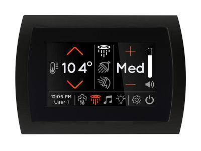 Available in a 5 in LCD in-shower touchscreen, the streamlined SignaTouch In-Shower Control controls digital shower and steam functions, and can operate Serenity Light, Sound, Rain head when installed.
