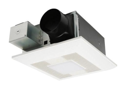 Panasonic WhisperFit® DC Ventilation Fan/Light, 120 V AC, 4.2/6.6/11 W Fixture, 0.28 A, 10 W Lamp, >/=72 Lumens/W Light Output, 50000 hr Average Life, Warm White Light, 3000 K Color Temperature, >/=90 CRI, Ceiling Mounting, 50/80/110 cfm Air Flow, 26 ga Galvanized Steel Housing Material, 10-1/4 in L x 10-1/4 in W x 5-5/8 in H