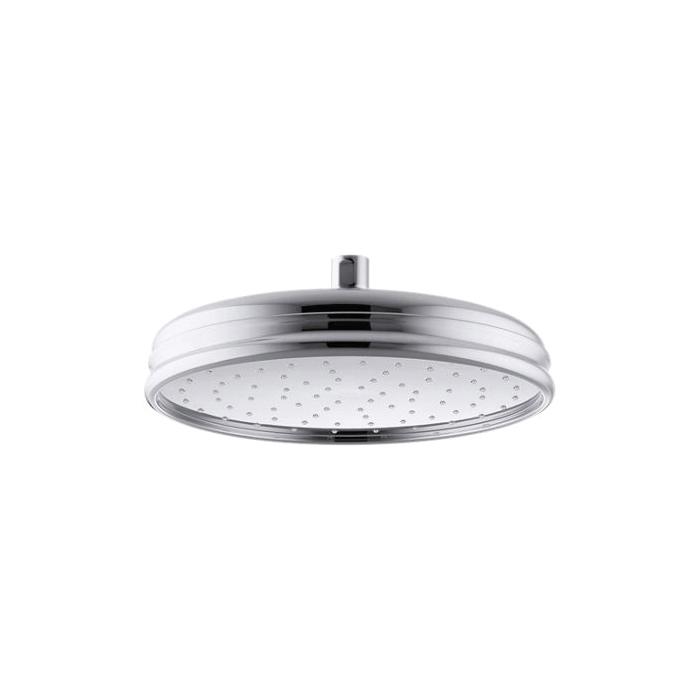 Kohler® Shower Head, Traditional 1-Function, Series: 13693-G, 1.75 gpm Maximum, 1/2-14 NPT Connection, Round Shape, Number of Sprays: 1, Spray Pattern: Rain, Ceiling Mounting, 80 psi, 10-7/16 in Dia x 3-11/16 in H Head, Solid Brass, Polished Chrome
