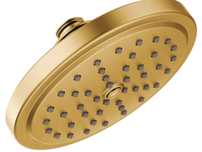Moen® Raincan Shower Head, Self Pressurizing, Series: S176EP, Fina®, 2 Transitioning to 1.75 gpm, 1/2 in IPS, Number of Sprays: 1, Spray Pattern: Full, 7 in Dia Head, 7 in Overall Width, 7 in Overall Height, Brass, Brushed Gold, Domestic
