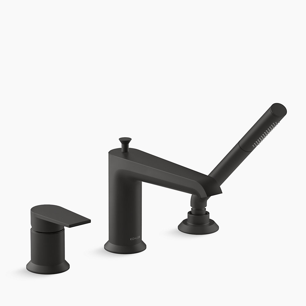 Minimalist in its design, the Hint(TM) bathroom faucet collection is a versatile style choice for traditional or contemporary environments. Coordinate with KOHLER(R) Pitch(TM) showering components, and create a space that will look beautiful for years to come. This deck-mount bath faucet includes a handshower to enhance your bathing options.