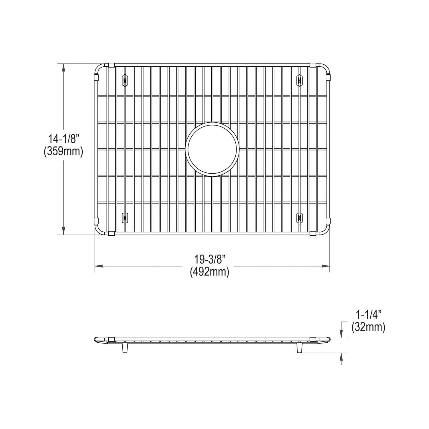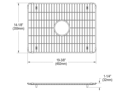 Elkay® Bottom Grid, Crosstown®, 19-3/8 in Length, 14-1/8 in Width, 1-1/4 in Height, Stainless Steel, Polished Stainless Steel, Import