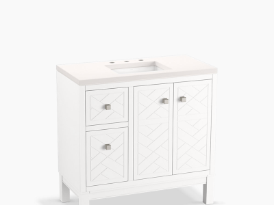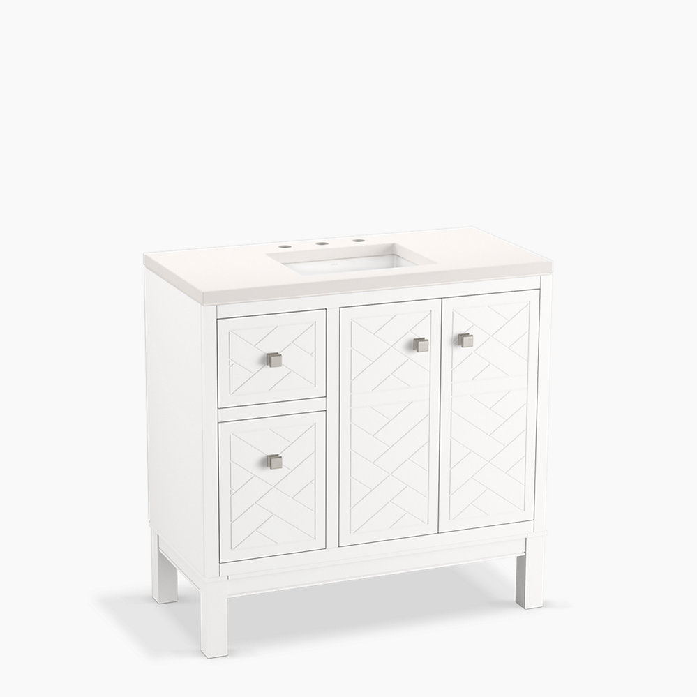 Kohler K-33531-ASB-0 Beauxline(R) 36" Bathroom Vanity Cabinet with Sink and Quartz Top - White