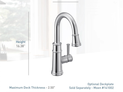Moen® Pulldown Prep/Bar Faucet, Series: 6260 Series, Belfield™ Collection, 1.5 gpm Flow Rate, 360 deg High-Arc Spout, 6-1/2 in Spout Reach, 8-3/8 in Spout Height, 68 in L Hose, Lever Handle, 1 Handles, 1/3 Faucet Holes, 1-1/2 in Faucet Hole, 3/8 in Connection, Compression Connection, Spray Pattern: Aerated Stream, 2 Spray Functions, 2-1/2 in Maximum Deck Thickness, Deck Mounting, 1255™ Duralast™ Cartridge, 10-1/4 in L x 14-3/8 in H Dimensions, Metal, Oil Rubbed Bronze, Domestic