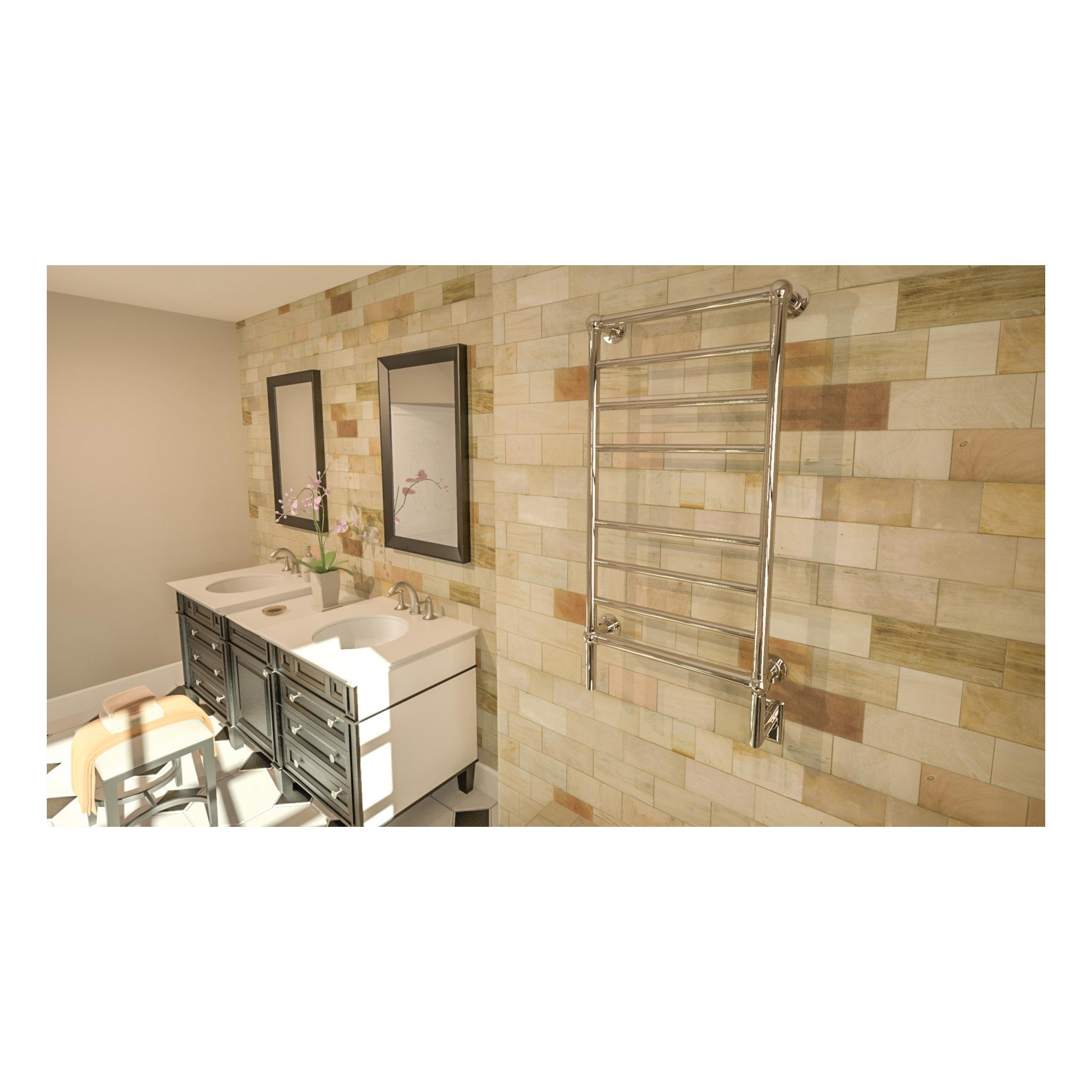 Amba®, T-2040PN, Towel Warmer, Hardwired, Series: Traditional, Hardwired Power Source, 120 V, 150 W Wattage, 1.36 A, 8 Bars, 43-1/8 in Height, 21 in Width, 5-3/8 in Depth, 130 to 150 deg F, Wall Mounting, Low Carbon Steel, Polished Nickel