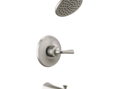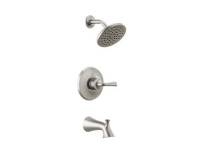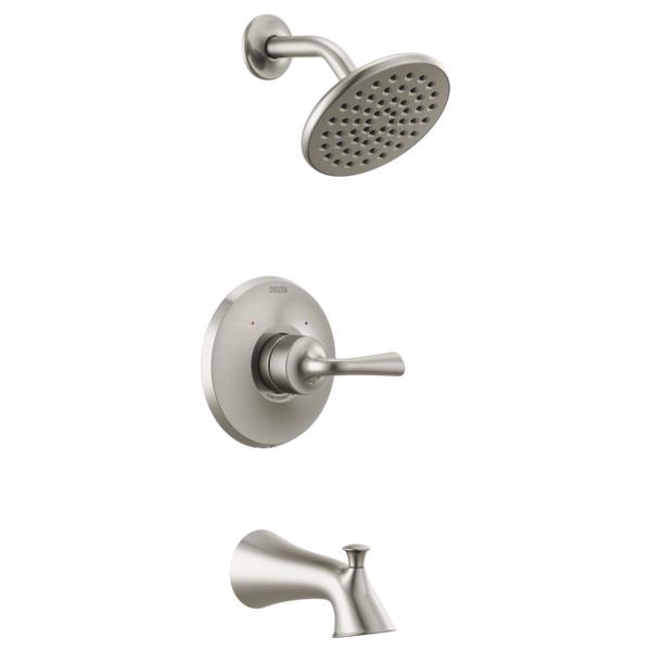 DELTA® Tub and Shower Trim, Series: Monitor® 14 Series, Kayra™ Collection, 1.75 gpm Shower Flow Rate, Pull-Up Diverter Spout, 5-1/2 in Spout Reach, 1 Handle, Lever Handle, 6-5/8 in Dia x 4-3/8 in W Trim, Pressure Balanced Valve Cartridge, Spray Pattern: Full Body, 1 Spray Functions, 80 psi Pressure, Wall Mounting, For Use With: MultiChoice® R10000 Series Universal Rough Valve Body, Zinc, Brilliance® Stainless Steel, Domestic