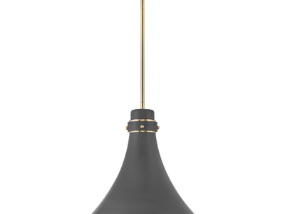 Hinkley® 39054DMG Oliver Traditional Medium Pendant, (1) Lamps Lamp, 120 V, Dark Matte Grey with Bright Brass accents Housing