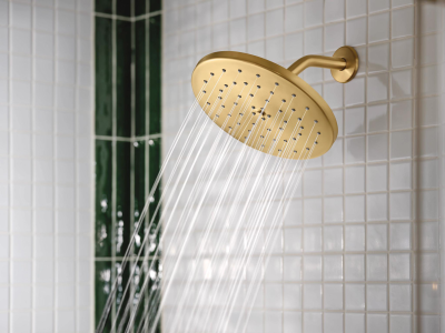 Moen® Shower Trim Only, Series: UT3362 Series, CIA™ M-CORE™ Collection, 2.5 gpm Shower Flow Rate, 1 Handles, Lever Handle, 3-1/4 in Trim, 1213 Cartridge, Hand Shower: No, Spray Pattern: Full/Rainshower, 80 psi Pressure, Wall Mounting, For Use With: U140/U130 Series Valves, Metal, Brushed Gold, 11-1/4 in D Dimensions, Domestic, Commercial Commercial/Residential